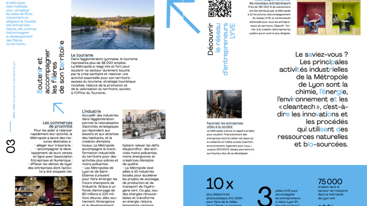 Sans complexe, nous optons pour un document qui se lit en diagonale, en décousu. Les lecteurs et les lectrices y jetteront un œil entre deux courriers à ouvrir, dans l'ascenseur, ainsi soit-il ! Nous avons donc une fenêtre de tir très réduite pour qu'ils retiennent une donnée, un chiffre. Et que, finalement, ils se laissent intéressés par la pertinence des infos sélectionnées et par l'esthétique du support.